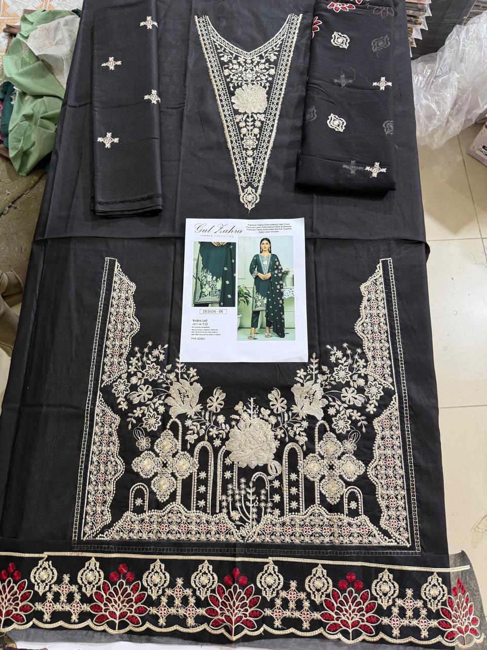 Upgrade your summer wardrobe with this premium embroidered lawn 3-piece from Gul-e-Zahra, designed for elegance and everyday comfort. Crafted with high-quality 90/88 lawn, this outfit features detailed embroidery and breathable fabric, making it ideal for the summer season.