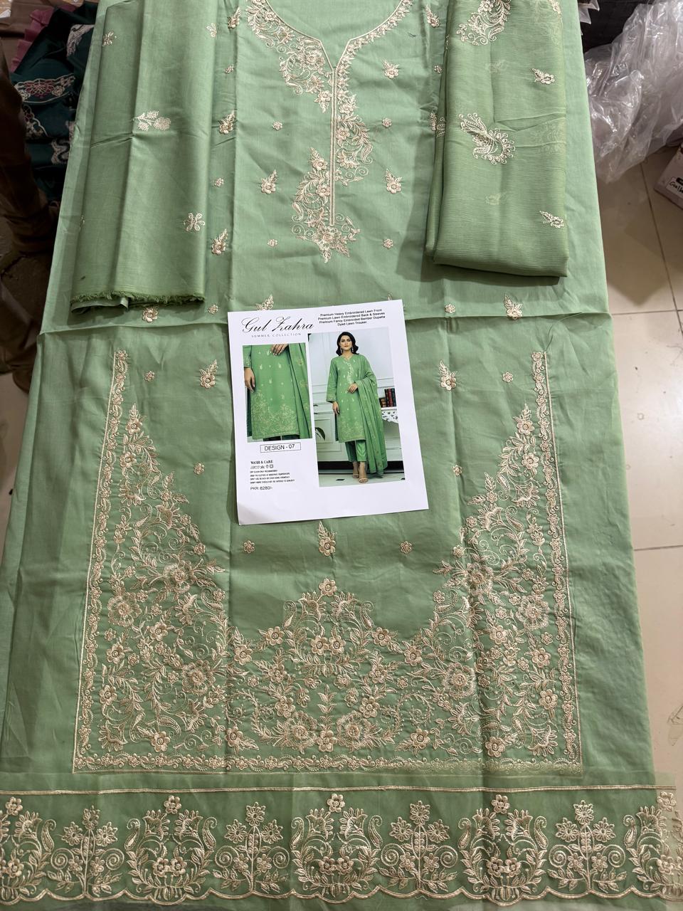 Upgrade your summer wardrobe with this premium embroidered lawn 3-piece from Gul-e-Zahra, designed for elegance and everyday comfort. Crafted with high-quality 90/88 lawn, this outfit features detailed embroidery and breathable fabric, making it ideal for the summer season.