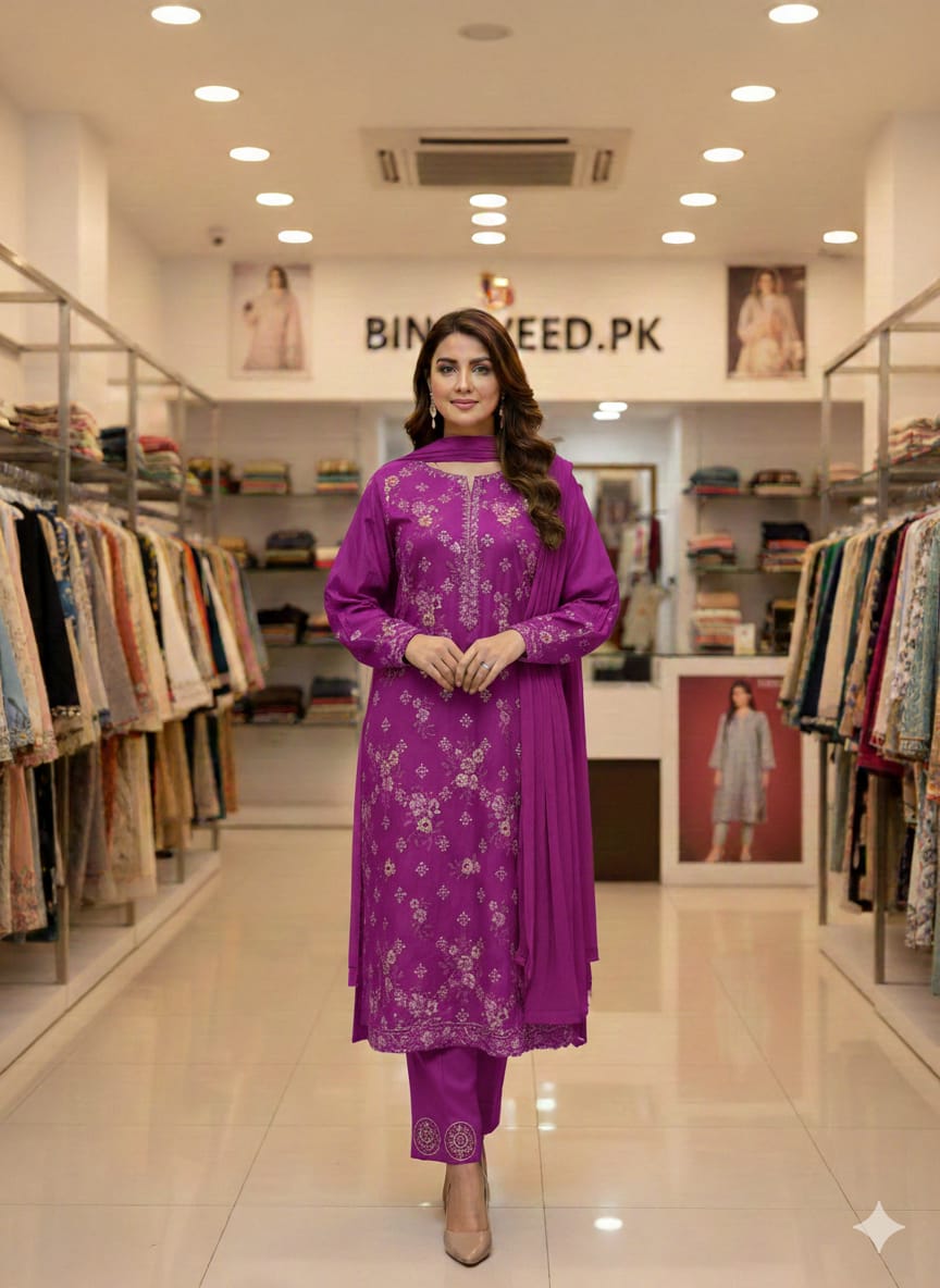 InshaAllah market mein is type ka Bareeza style embroidered lawn 2-piece aam tor par mehnga milta hai,