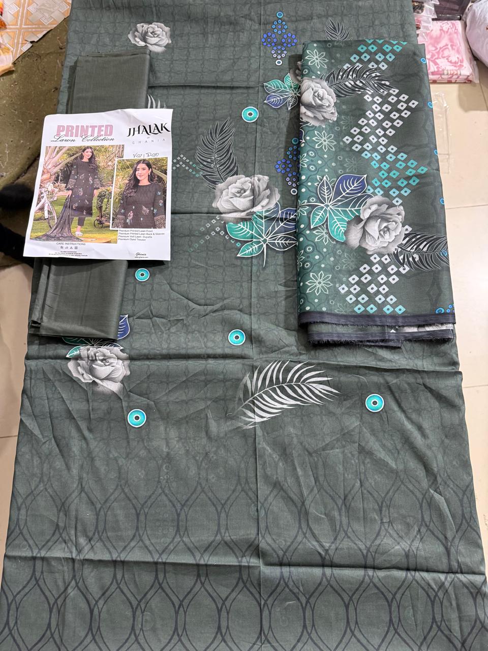 Elegant and comfortable original lawn 3-piece suit from Jhalak by Ghania, featuring modern digital prints and breathable summer fabric. Perfect for daily wear and casual outings, offering premium quality at a special sale price.
